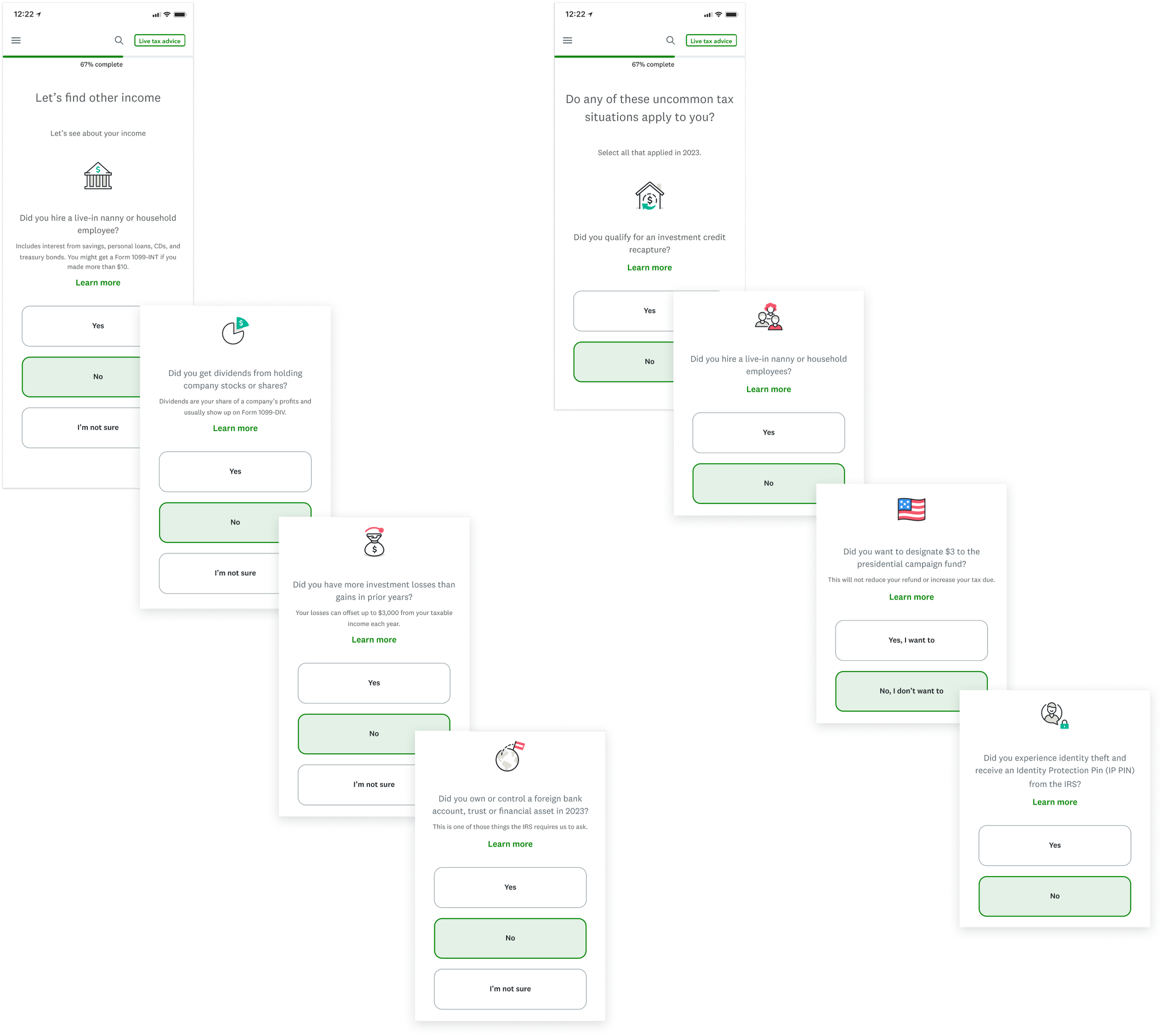 My team was tasked to create a seamless tax filing experience that was run by TurboTax but displayed on Credit Karma app or website.